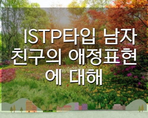 정리드린 글은 ISTP타입 남자친구의 애정표현에 대해 입니다. 상기정보가 찾으셨던분께 좋은 정보가 되셨으면 합니다.