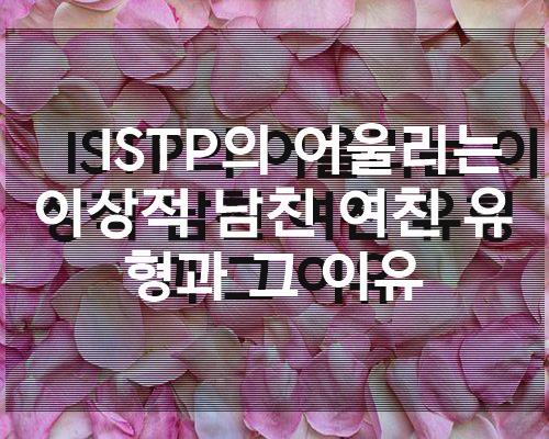 정리드린 내용은 ISTP의 어울리는 이상적 남친 여친 유형과 그 이유 입니다. 찾으셨던분께 좋은 내용이 되셨길...