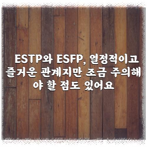 ESTP와 ESFP, 열정적이고 즐거운 관계지만 조금 주의해야 할 점도 있어요 정리 하였습니다.