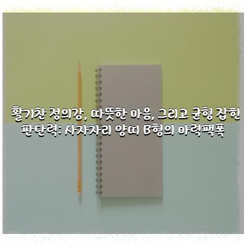 활기찬 정의감, 따뜻한 마음, 그리고 균형 잡힌 판단력: 사자자리 양띠 B형의 마력팩폭 정리 하였습니다.