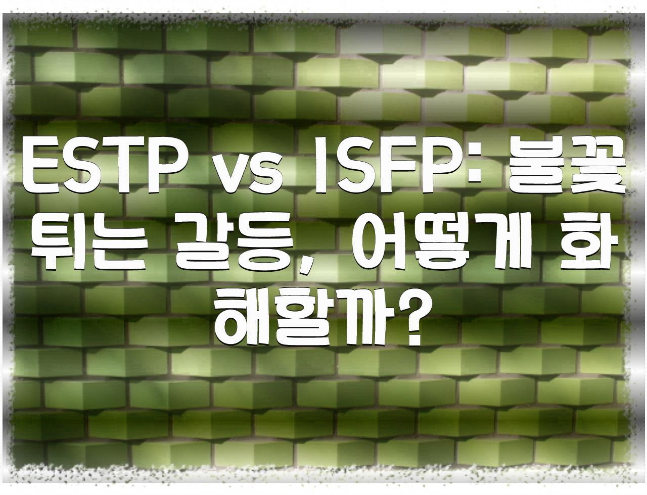 관련 핵심내용: 함께 보실까요? ESTP vs ISFP: 불꽃 튀는 갈등, 어떻게 화해할까? 관련 제대로 알아보실께요.