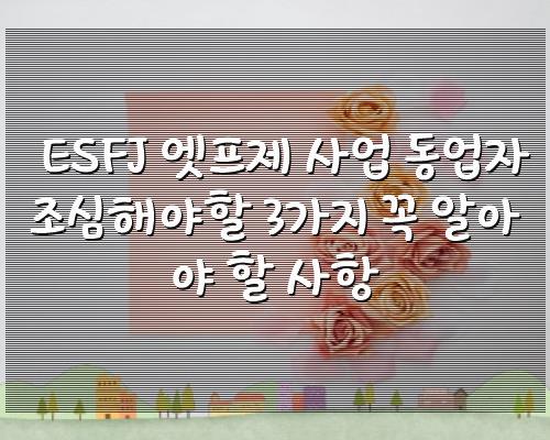 ESFJ 엣프제 사업 동업자 조심해야할 3가지 꼭 알아야 할 사항